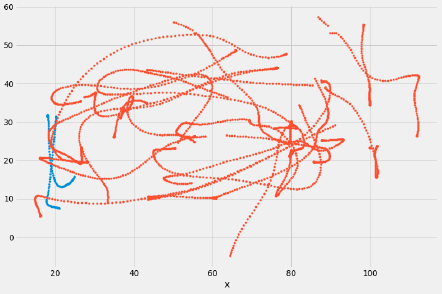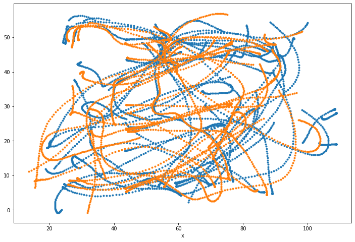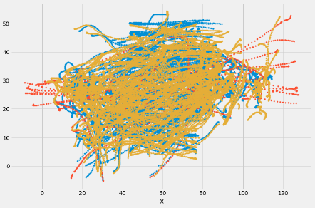 .plot(x='x', y='y', ax=ax, style='.')#设置坐标轴及比赛场选取