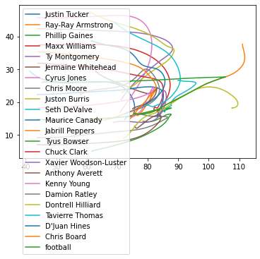for display in df_track['displayName'].unique():#循环遍历绘制所有比赛球手运动轨迹