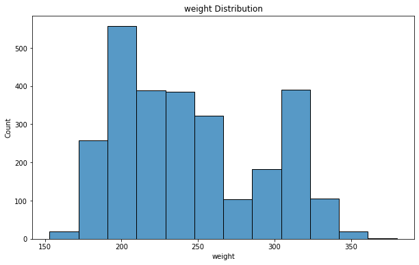 ax.set_title('weight Distribution');# 绘制球员体重分布图