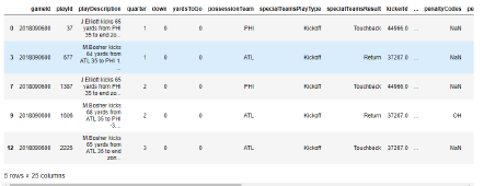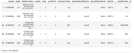 kickoff_returns_df = kickoffs_df.loc[kickoffs_df['specialTeamsResult'] == 'Return']#处理开球回攻数据