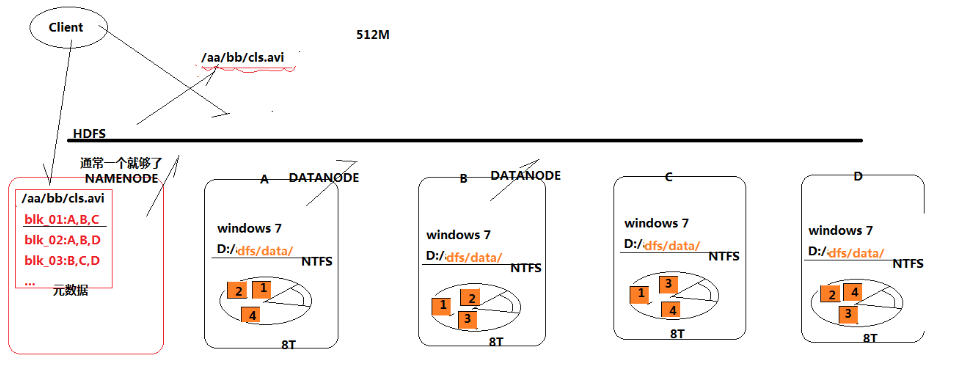 为了防止Datanode上文件的改变(如删除,损坏),Datanode还会定期向NameNode汇报自身所存储的block信息